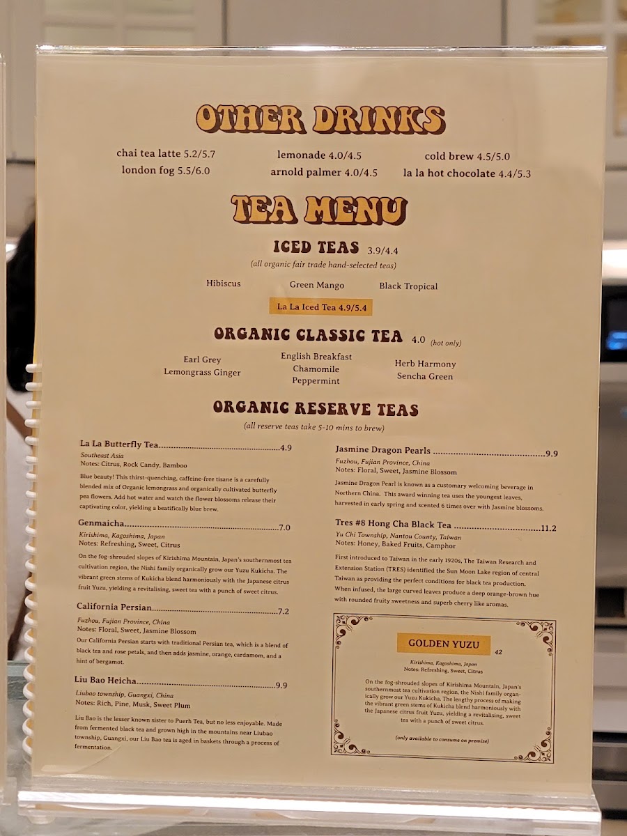 Additionally, the café serves organic reserve teas like the aromatic La La Butterfly Tea and refreshing Yuzu Kukicha. Customers rave about the café's inviting ambiance; the sun-drenched outdoor seating is ideal for enjoying your beverage while people-watching. With thoughtful service and a clean, stylish interior, La La Land Kind Cafe is a perfect pit stop during your shopping spree or a leisurely afternoon. Whether you're looking for a quick caffeine fix or a cozy spot to unwind, this café delivers a tastefully curated experience.