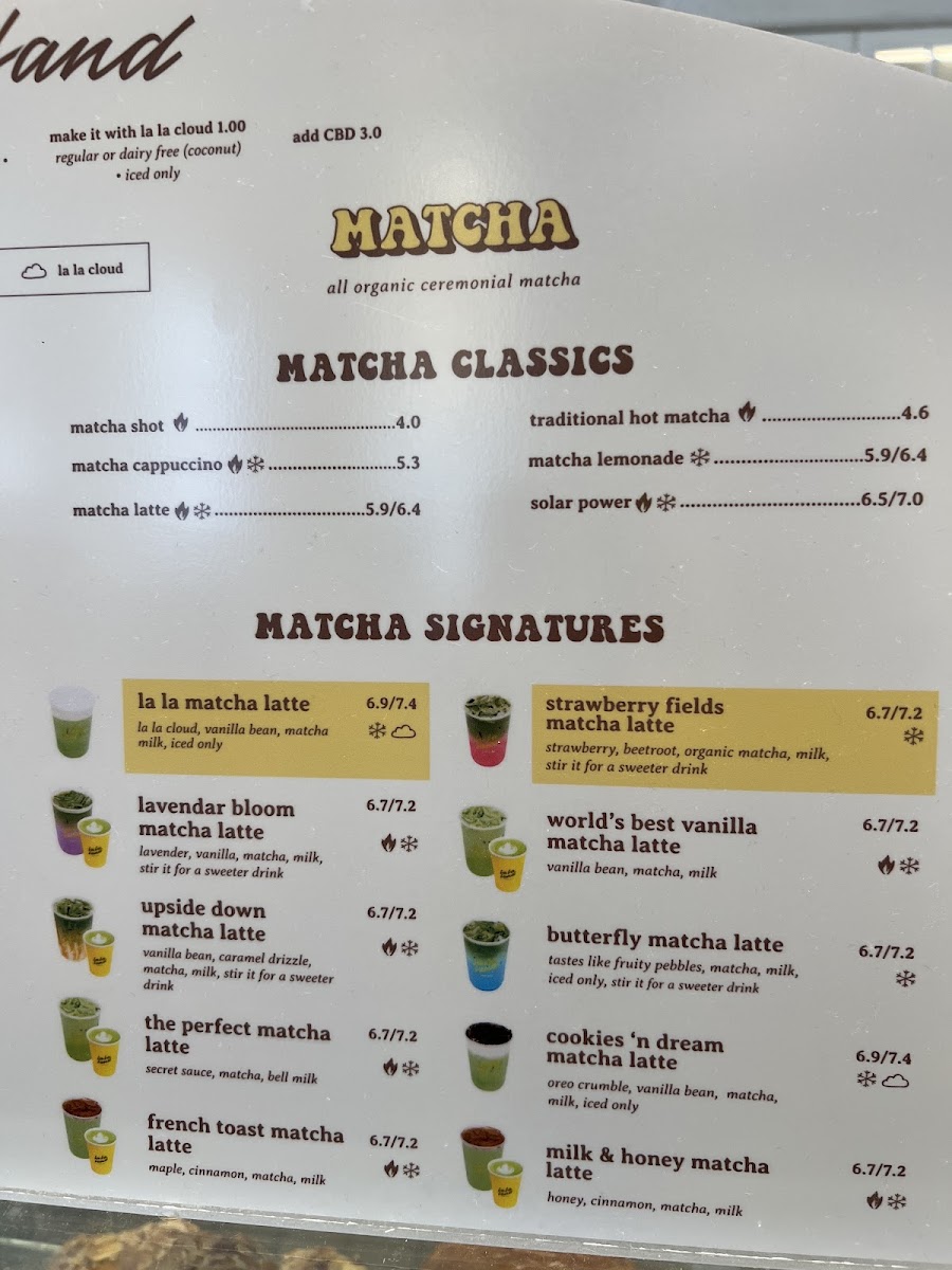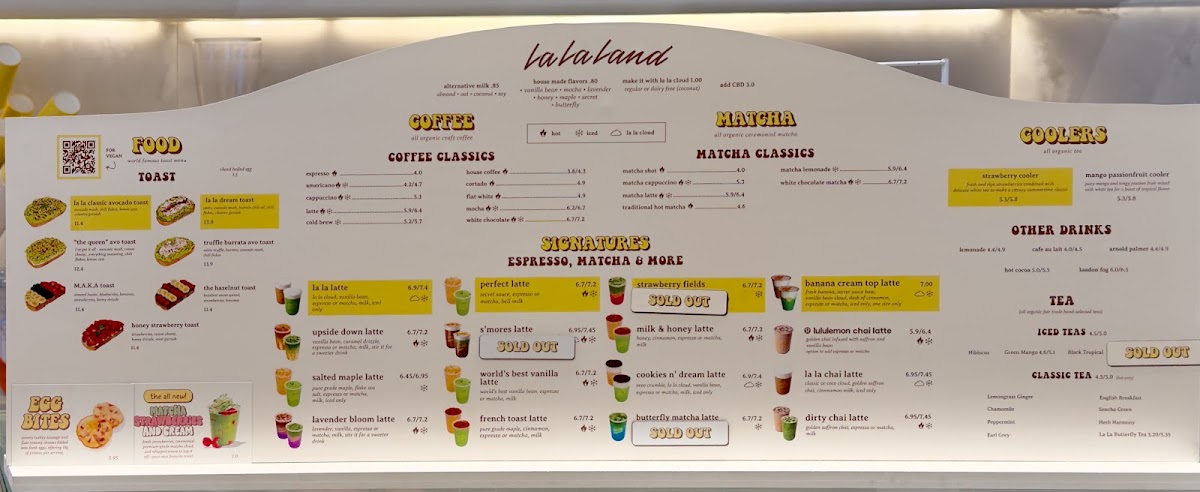 Welcome to La La Land Kind Cafe, nestled in the vibrant heart of Los Angeles at The Grove. This charming coffee shop offers an array of beverages that cater to both coffee lovers and matcha enthusiasts. Begin your day with a Matcha Shot or indulge in the creamy richness of a Milk & Honey Latte. The menu also highlights unique offerings like the French Toast Latte and the Cookies N' Dream Latte, providing a delightful blend of flavors.